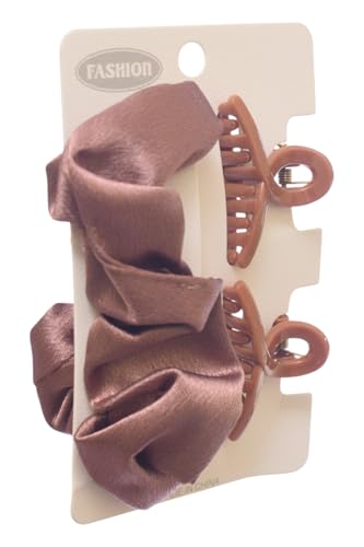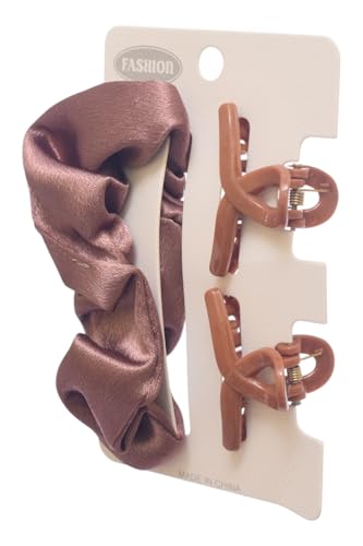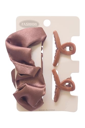 Daphane - مشابك مخلبية للشعر مع توك شعر للبنات من دافني، 3 قطع، بني