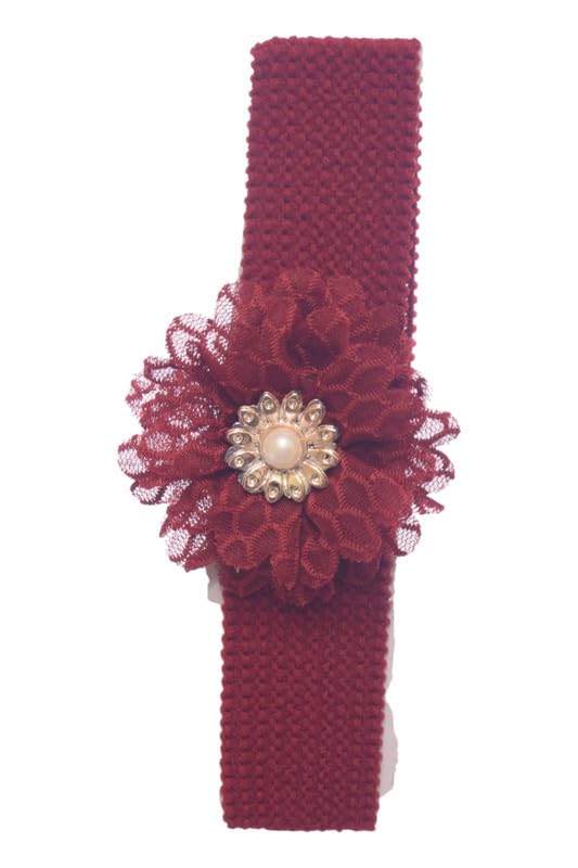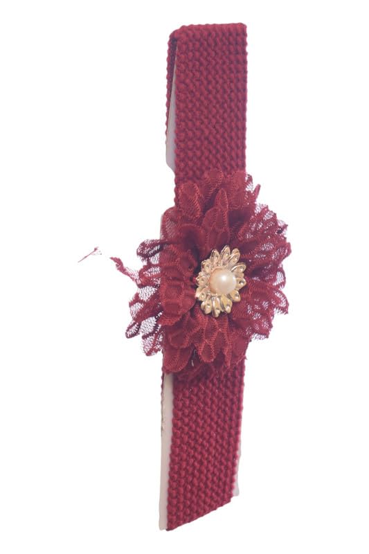 Daphane - شريط رأس بتصميم زهور للبنات من دافان - لون بورغندي