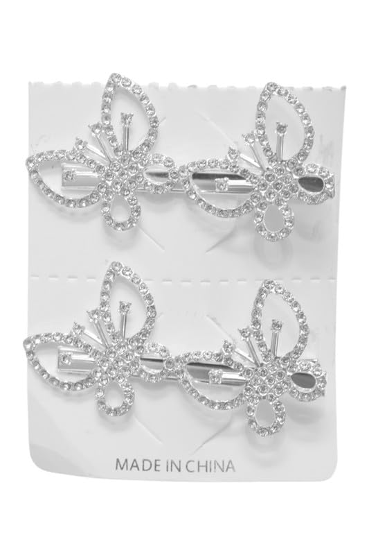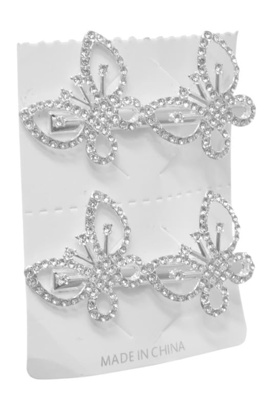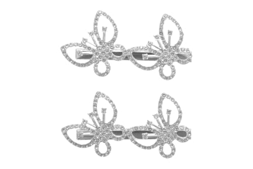 Daphane - مشابك معدنية بتصميم فراشة للبنات من دافين، مجموعة من قطعتين، لون فضي