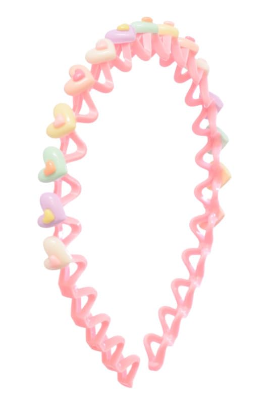 Daphane - طوق رأس بلاستيك مموج بتصميم قلوب للبنات من دافان، لون وردي