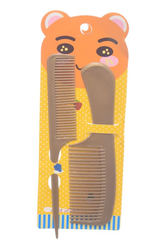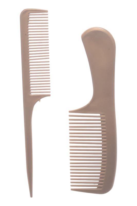 Daphane - مجموعة أمشاط شعر بلاستيك ضيقة وواسعة من دافان، لون بني، قطعتين