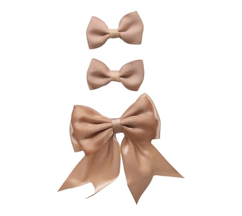 Daphane - طقم مشابك شعر على شكل فيونكة للبنات من داهبن، 3 قطع - بني
