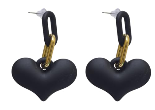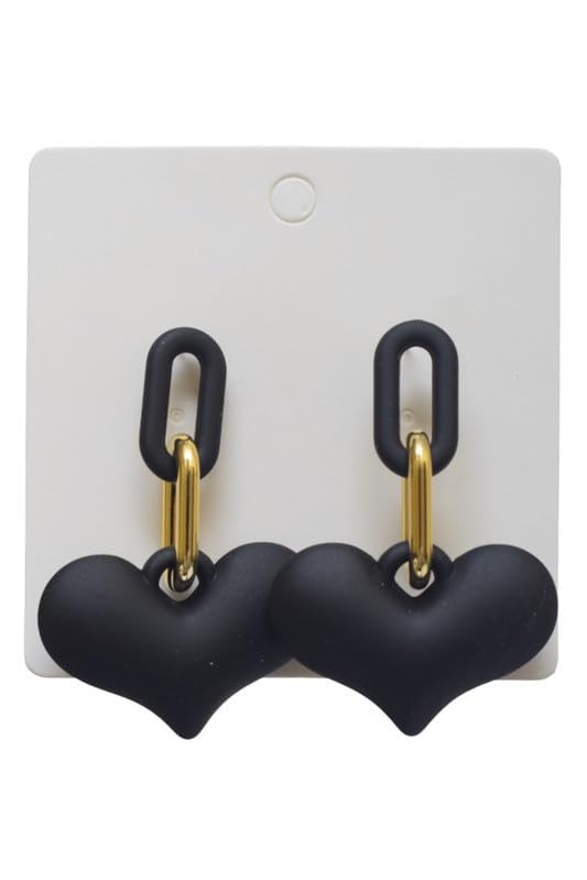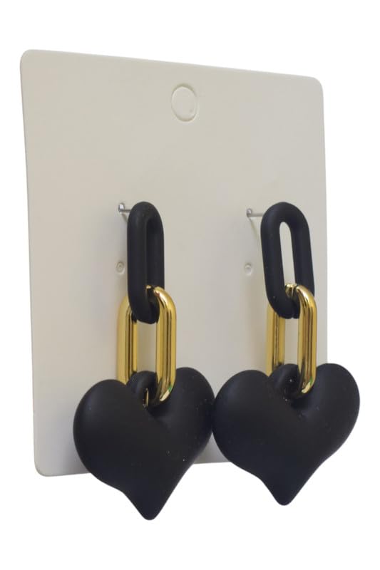 DAPHNE - دافني حلق اكريليك غير لامع بتصميم قلب للبنات - ذهبي واسود