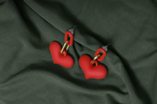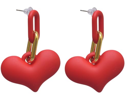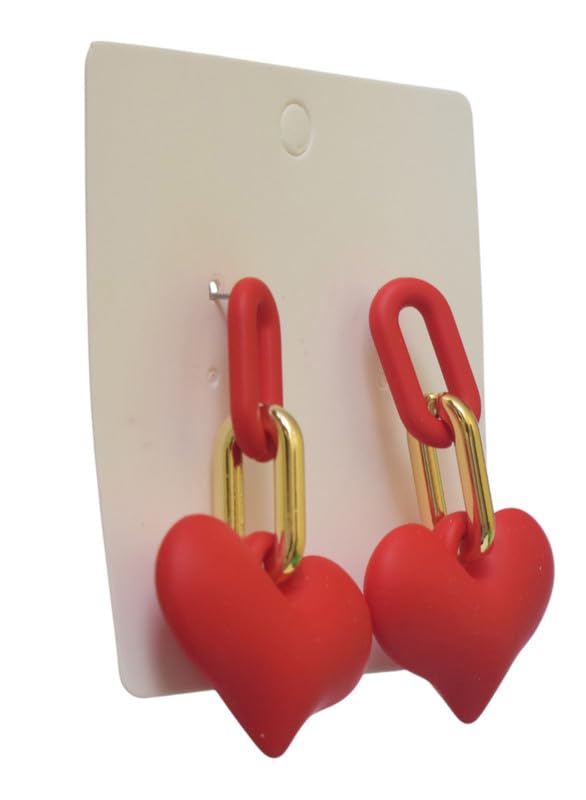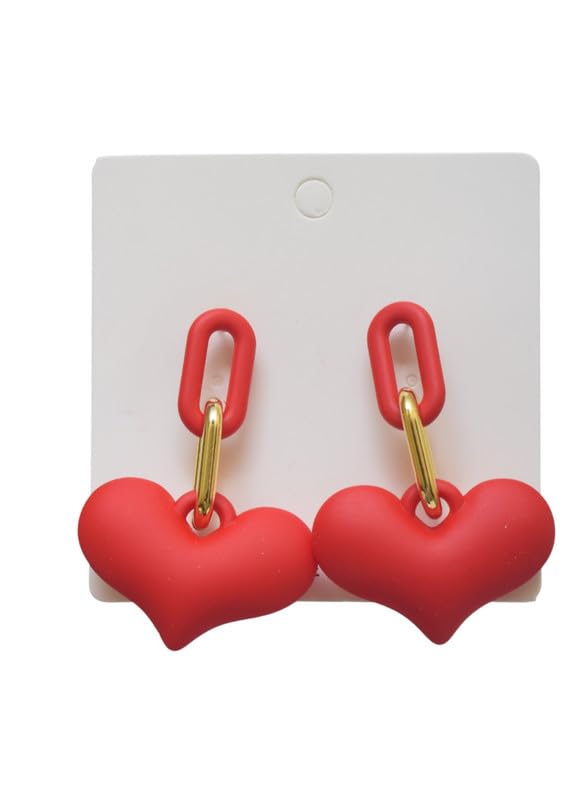 DAPHNE - دافني حلق اكريليك غير لامع بتصميم قلب للبنات - ذهبي واحمر