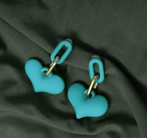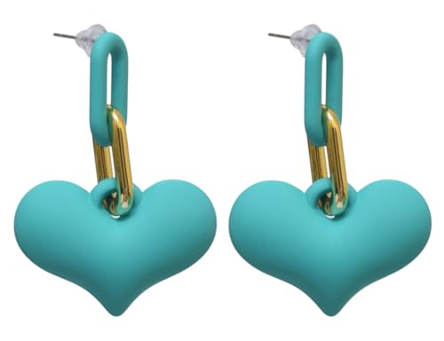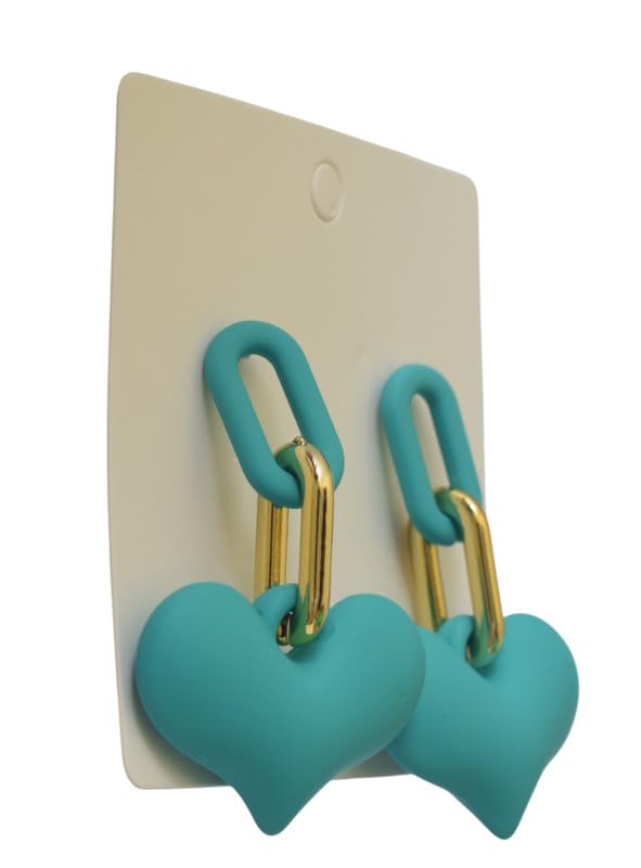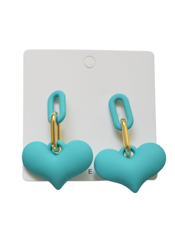DAPHNE - دافني حلق اكريليك غير لامع بتصميم قلب للبنات - ذهبي وتركواز