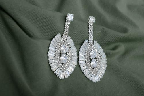 DAPHNE - دافني اقراط متدلية طويلة فاخرة مصنوعة من احجار الزركون اللامعة عالية الجودة لحفلات الزفاف والمناسبات الخاصة والمناسبات المسائية الأنيقة