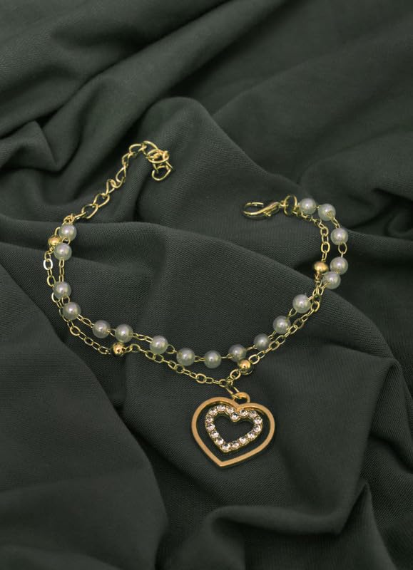DAPHNE - دافني سوار وخلخال من الستانلس ستيل على شكل قلب - ذهبي