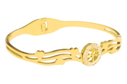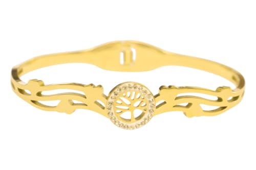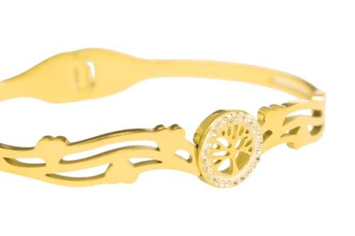 DAPHNE - دافني سوار ستانلس ستيل مرصع باحجار لامعة على شكل شجرة - ذهبي