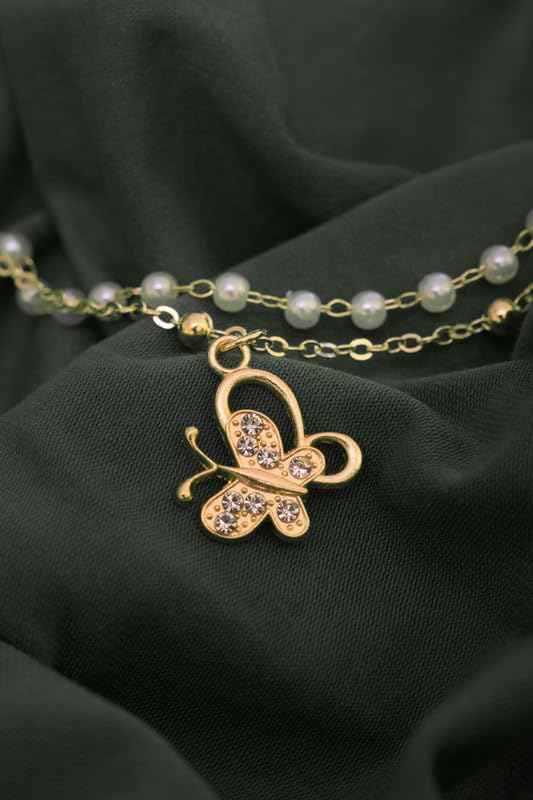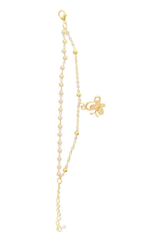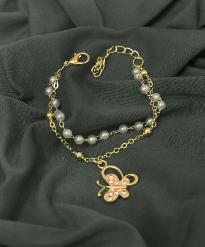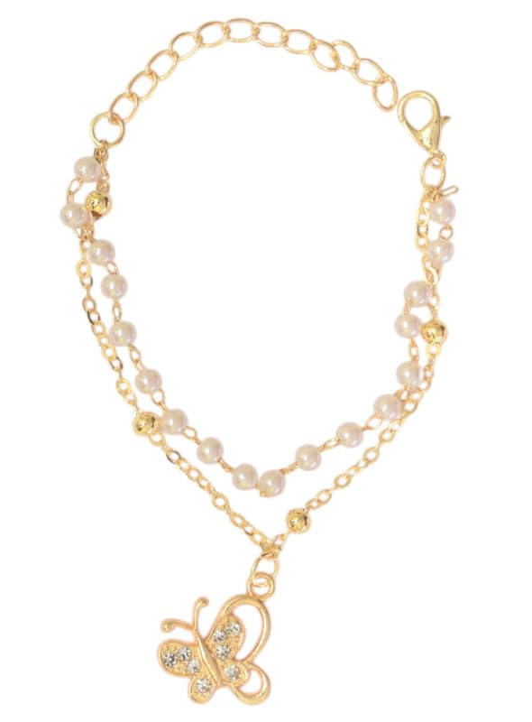 DAPHNE - دافني طقم خلخال وسوار من الستانلس ستيل على شكل فراشة - ذهبي
