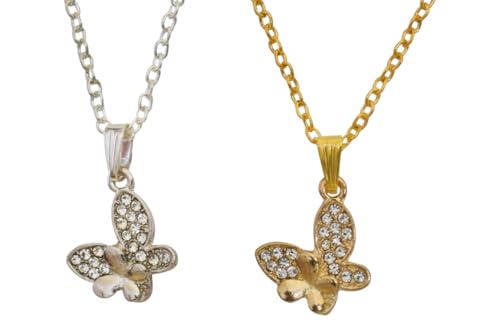 DAPHNE - دافني عقد للازواج من الستانلس ستيل بتصميم فراشات - فضي ذهبي