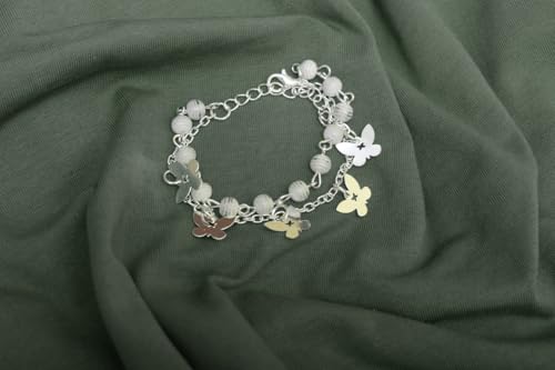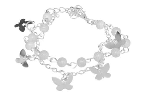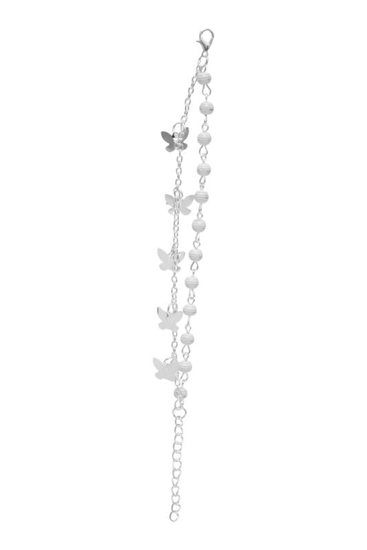 DAPHNE - دافني سوار مزدوج من الستانلس ستيل بتصميم فراشة للبنات - فضي وابيض