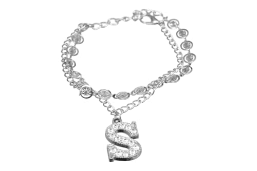 DAPHNE - دافني سوار مزدوج من الستانلس ستيل بتصميم حرف S للبنات - فضي