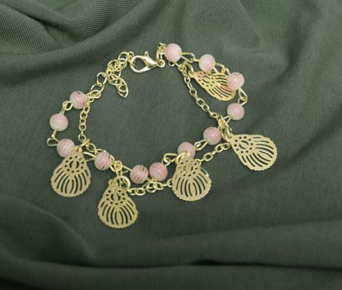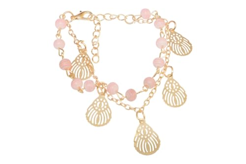 DAPHNE - دافني سوار مزدوج من الستانلس ستيل بتصميم مقسم للبنات - ذهبي وبينك