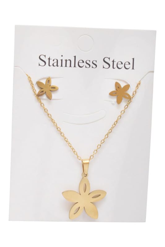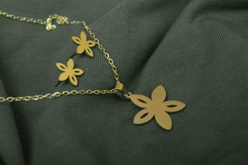 DAPHNE - دافني طقم مجوهرات من الستانلس ستيل مكون من عقد واقراط بتصميم زهرة للبنات - ذهبي