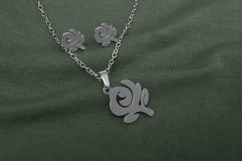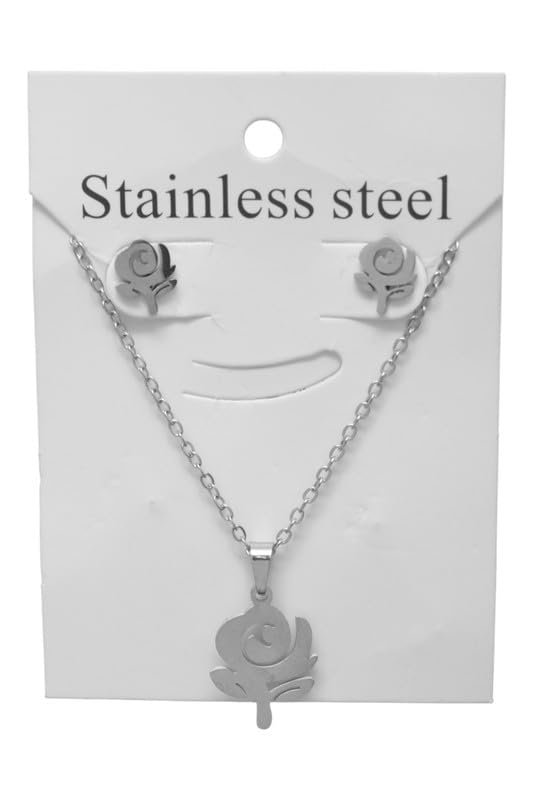 DAPHNE - دافني طقم مجوهرات من الستانلس ستيل مكون من عقد واقراط بتصميم زهرة للبنات - فضي - 1236
