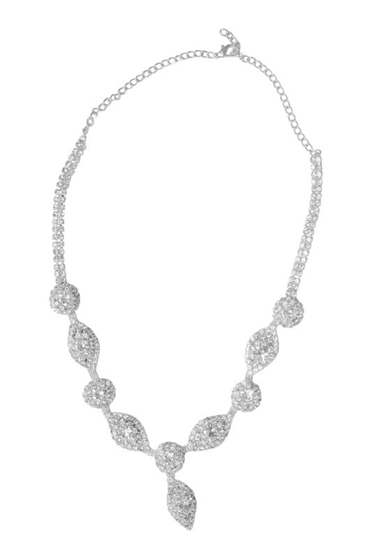 DAPHNE - دافني طقم مجوهرات من الستانلس ستيل مكون من عقد واقراط بتصميم ماركيز للبنات - فضي - 1232
