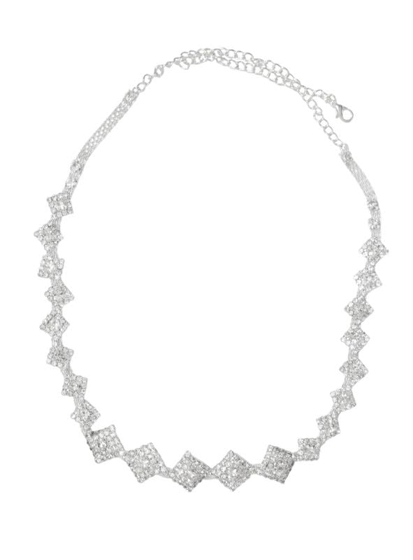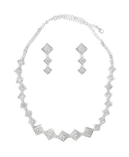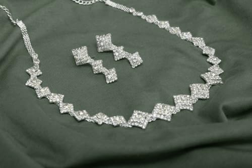 DAPHNE - دافني طقم مجوهرات من الستانلس ستيل مكون من عقد واقراط بتصميم معين للبنات - فضي