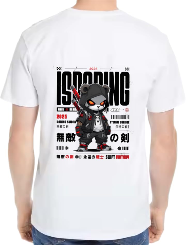 Generic - تي شيرت مطبوع بعبارة DARING SWORD بلون أبيض