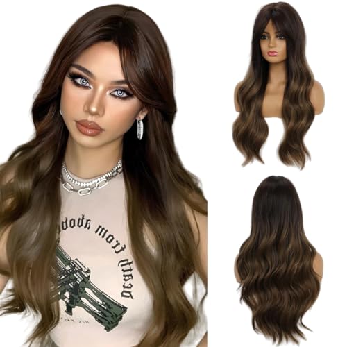 Generic - باروكة كيرلي بلون بني غامق من شعر صناعي بخط شعر طبيعي مقاوم للحرارة للحفلات التنكرية والكوسبلاي للنساء 1b