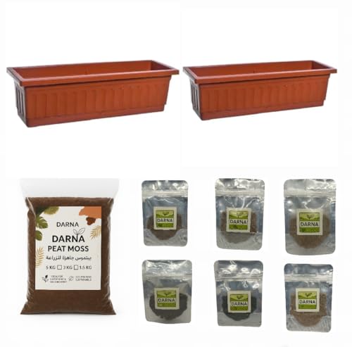 - مجموعة متكاملة: تحتوي على حوضين زراعة بطول ٦٠ سم، وستة أصناف من البذور المتنوعة، وكيس تربة زراعية سعة ١٢.٥ لتر