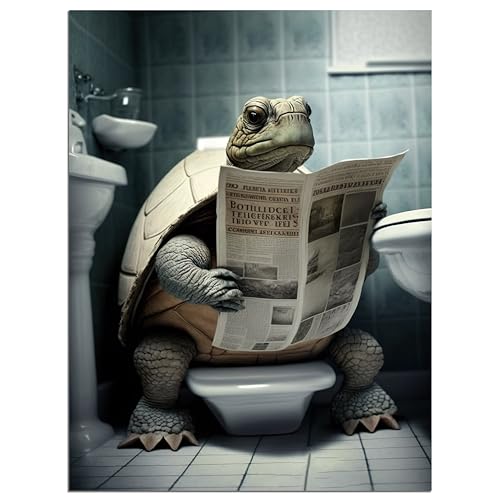 DARO Design - لوحة جدارية من دارو ديزاين، طباعة فنية للحمام بتصميم سلحفاة باللونين الأسود والأبيض، مقاس 29.97 × 20.07 سم، قطعة واحدة