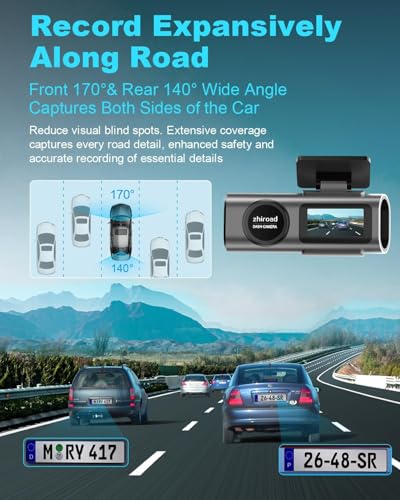 zhiroad - كاميرا تابلوه أمامية مدمجة بدقة 4K وواي فاي للسيارة، شاشة IPS 1.47 بوصة مع تطبيق، زاوية واسعة 170°، شاشة وقوف 24 ساعة ورؤية ليلية ودبليو دي ار ومقياس تسارع مع بطاقة SD 64GB، تدعم 256GB كحد أقصى (Q20)