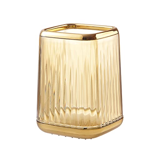 DASITON - داسيتون منظم حامل فرش المكياج حاوية تخزين مستحضرات التجميل بلون كهرماني مربع كوب مكياج مخطط عتيق