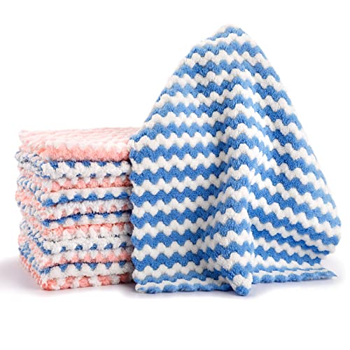 DASTOEJI - قطعة قماش للتنظيف من المايكروفايبر داستويجي فوطة مطبخ قابلة لاعادة الاستخدام مصنوعة صوف مرجاني فائق الامتصاص وقابلة للغسل وسريعة الجفاف للمطبخ 24×24 سم 25*25