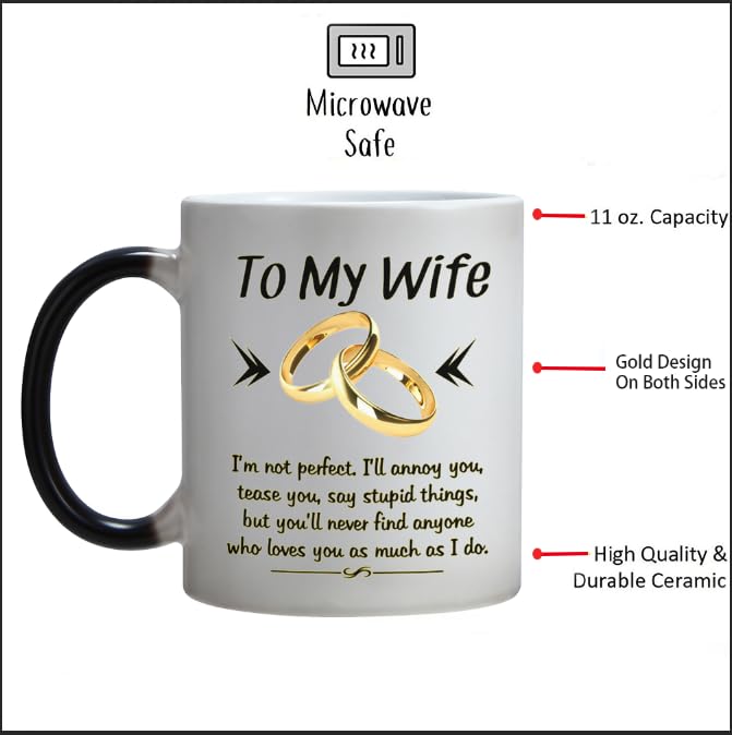 - 【كوب للزوجة متغير اللون بسعة 315 مل】هذا الكوب متغير اللون حسب درجة الحرارة للزوجة، يكون لونه أسود عندما يكون السائل بارد ويتحول إلى اللون الأبيض عند سكب الشراب الساخن وتظهر الطباعة. سيراميك عالي الجودة، فم واسع ومقبض كبير على شكل حرف C يسمح بالاستخدام اليومي. سواء كنت تشرب قهوتك الصباحية في العمل أو تشرب فنجانًا ساخنًا من الشاي في المنزل، فإن هذا الكوب للزوجة ممتع وعملي مما يجعله يصبح ممتعًا وعمليًا، أكواب لأفضل زوجة من الزوج.