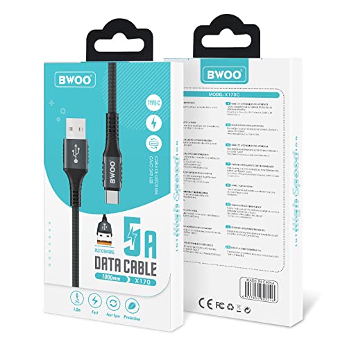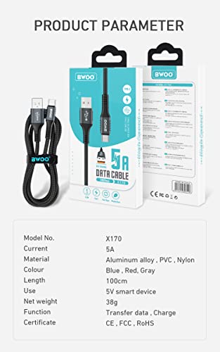 Generic - كابل بيانات 5 أمبير USB، المادة: نايلون مضفر + هيكل من خليط الألومنيوم الواجهة: النوع C، الطول: 1 متر، التيار: 5 Hمبير، الحجم: 155 × 85 × 25 ملم
