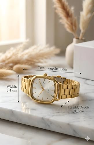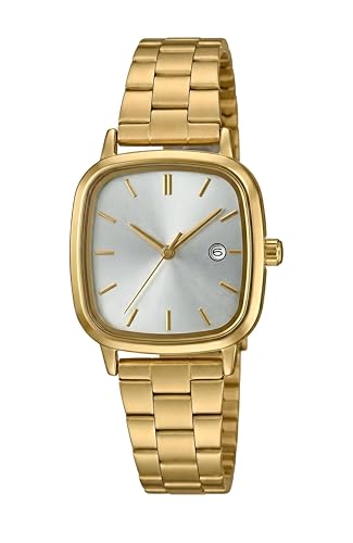Generic - ساعة فاخرة لعرض التاريخ - ساعة سويسرية بهيكل مبطن مع سوار فضي مصقول من الستانلس ستيل ونافذة بارزة للتاريخ ومينا بسيط ولمسة نهائية فاخرة ترتقي بأي ملابس