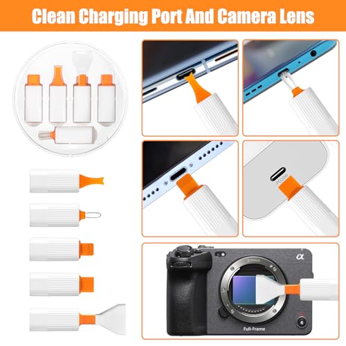 - مجموعة تنظيف للمنافذ من النوع سي: تحتوي مجموعة تنظيف الموبايل هذه على الكثير من الأدوات لتنظيف منافذ شحن لايتنينج ولوحة المفاتيح وايربودز وآيفون وايباد وعدسات الكاميرا ومنافذ النوع سي، وليست فقط صالحة لمجموعة تنظيف الأجهزة الإلكترونية، بل يمكن استخدامها أيضًا للشاحن اللاسلكي لأجهزة آيفون والساعة، وحامل الموبايل.