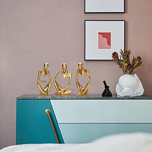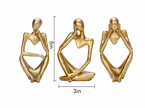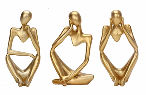 Dawbun - تمثال المفكر من داوبون من 3 قطع بلون ذهبي، منحوتات تجريدية لديكور رف الكتب، تماثيل مفكر من الراتنج الذهبي للمنزل والمكتب وسطح المكتب وغرفة المعيشة، مجموعة ديكور لطيفة