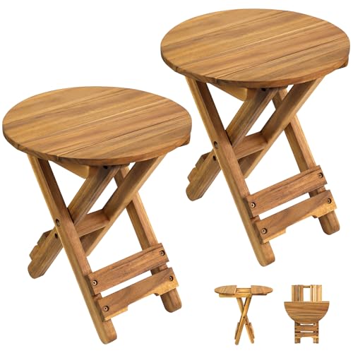 DAXULY - طاولة فناء صغيرة من داكسولي جانبية قابلة للطي محمولة قهوة سطح خشبي لغرفة المعيشة وغرفة النوم ... دائري - طبيعي - مجموعة 2