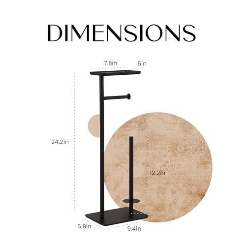 - ثبات أكبر: يتميز حامل ورق التواليت الأسود غير اللامع هذا مع الحامل بتصميم قائم بذاته ويأتي مزودًا بقاعدة ثقيلة ومبطنة لمزيد من الثبات. يمنعك من التحرك أو خدش أرضيات حمامك. بدون الحاجة إلى ثقب، يمكنك بسهولة وضع حامل البكرة العلوي في أي مكان دون قلبه. حامل ورق التواليت مع رف وحامل رخامي يناسب مساحتك بشكل مثالي.