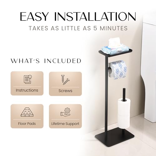 - سهل التركيب: يجعل حامل ورق المرحاض الخاص بنا التركيب سهلاً ويتميز بقضيب دوار سلس وصندوق تخزين قوي. كما يتضمن تعليمات ومسامير ومفك براغي لتركيب سريع وسهل يمكن تركيبه في دقائق. سهل التركيب، بدون أدوات ولا يحتاج إلى ثقب. مع حامل ورق التواليت الخاص بنا مع رف مع حامل، ستضيف الأناقة والراحة إلى حمامك في دقائق.