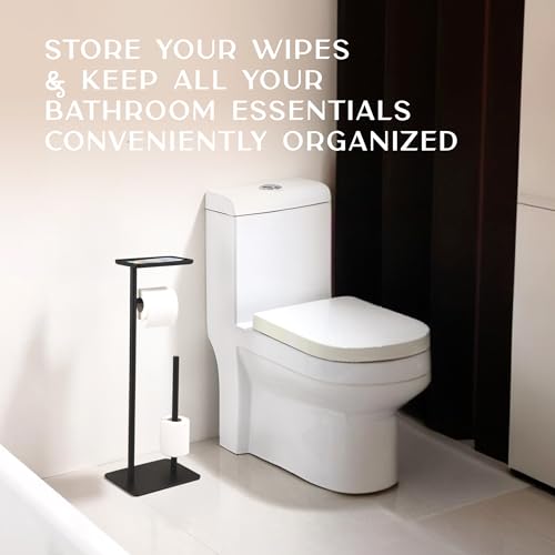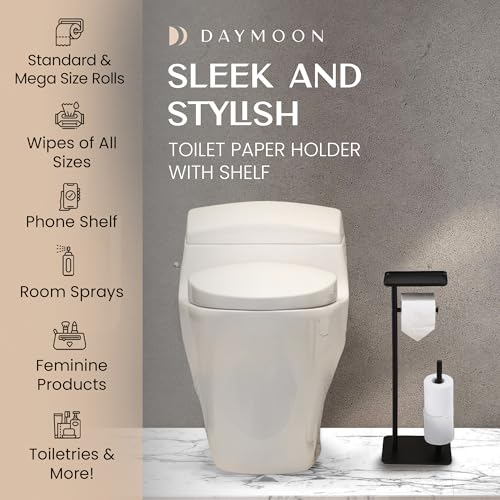Day Moon Designs - حامل ورق حمام ومناديل مبللة فولاذ مقاوم للصدأ قائم بذاته مع قاعدة رخام ورف للتصريف والتخزين من داي مون ديزاينز، لون أسود مطفي