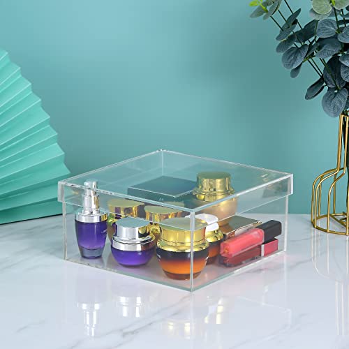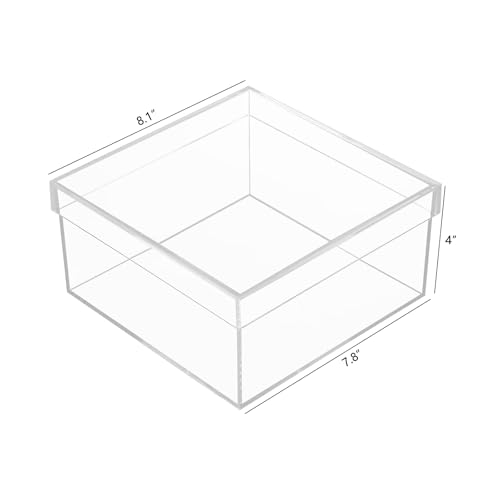 Dayaanee - صندوق أكريليك شفاف مع غطاء، حاويات مربعة بلاستيك شفافة من الأكريليك لتخزين الحبوب والحلوى والمجوهرات الصغيرة من داياني، مقاس 200× 200× 100 ملم