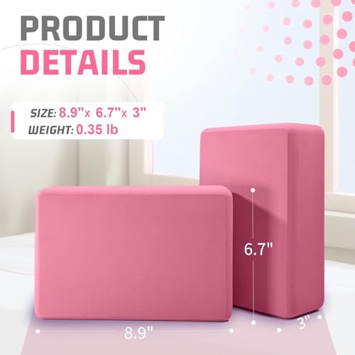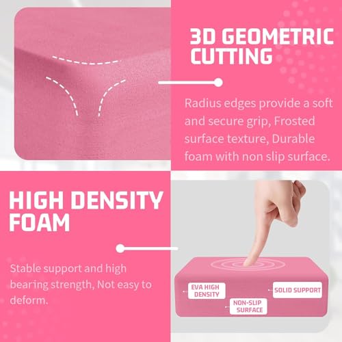 DAYANIDHI - مكعب يوجا مصنوع من إسفنج ايفا عالي الكثافة من دايانيدي، أداة رياضية للمنزل أو النادي، داعم وغير منزلق، مثالي للتأمل والتوازن (لون وردي، قطعة واحدة)
