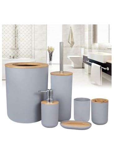 generic - مجموعة اكسسوارات الحمام الخشبية المصنوعة من الخيزران من داي دايدم، مجموعة من 6 قطع، فرشاة المرحاض، موزع الصابون، سلة مهملات، حامل فرشاة الاسنان، مجموعة اكواب الصابون يمكن استخدامها بشكل متكرر