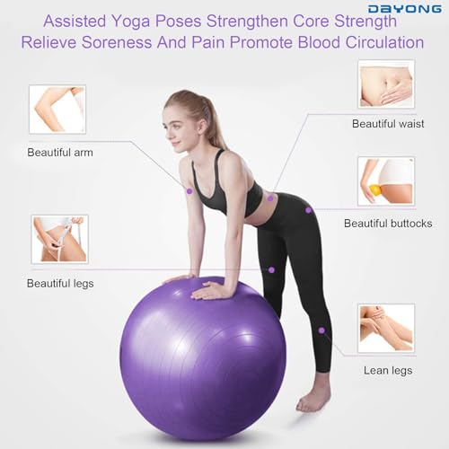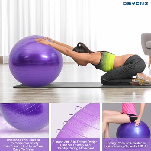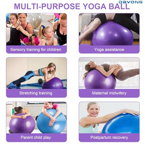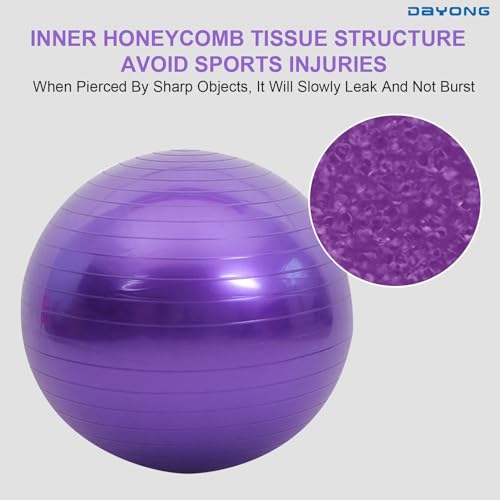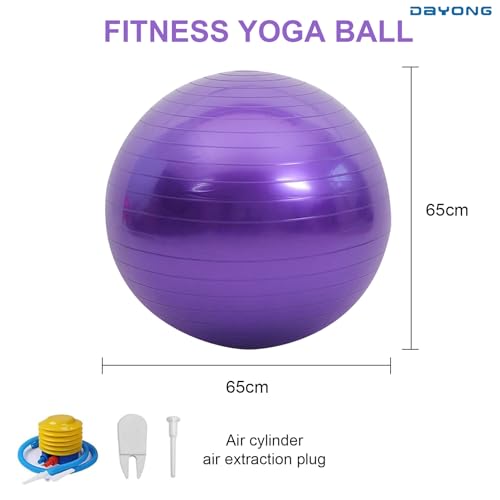 DAYONG - كرة تمارين مضادة للانفجار، كرة يوجا للياقة البدنية مع مضخة هواء للبالغين والأطفال، كرة توازن سميكة لليوجا والبيلاتس والتدريب الحسي للأطفال وتقوية عضلات الجذع (أرجواني، 65) من دايونج