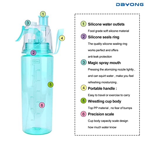 DAYONG - زجاجة مياه رياضية محمولة مقاومة للتسريب بفوهة ببخاخ من دايونج - 600 مل - ازرق