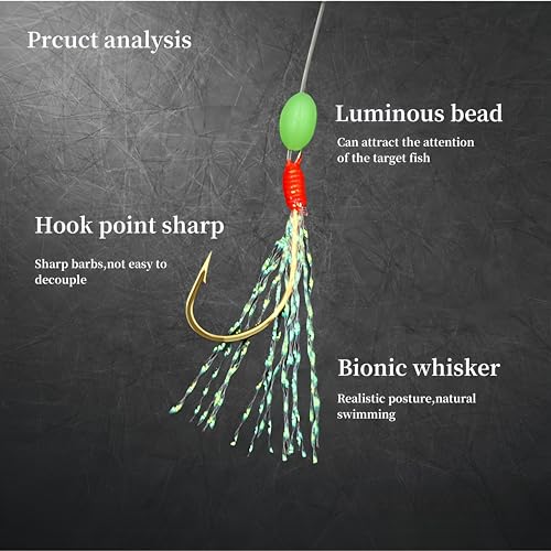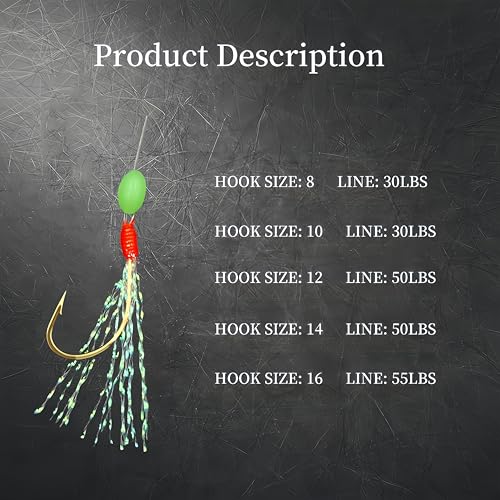 DAYUYUE - خطافات صيد سابيكي سبرينج مع خرز مضيء مجموعة من 5 قطع، مقاس 8 10 12 14 16 من دايويو (مجموعة سي)