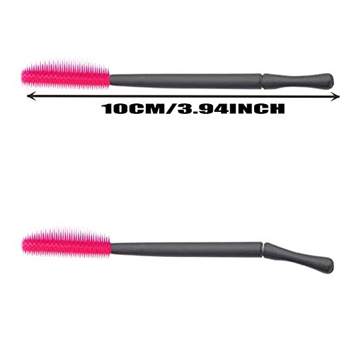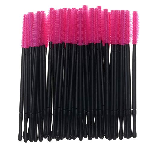 DAZAIGE - فرش رموش من السيليكون للاستعمال مرة واحدة من 50 قطعة من دازايج، رأس فرش ماسكارا بمقبض من البولي بروبيلين، أداة وضع وصلات رموش ناعمة محمولة للمكياج والحواجب والرموش (أحمر وردي، شكل سكين)