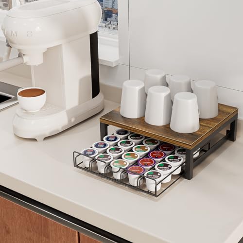 Dazioter - درج حامل كبسولات القهوة من دازيوتر بطبقتين لكبسولات كوب كيه ومنظم تخزين تحت وعاء القهوة ودرج منزلق (اسود، طبقة واحدة)