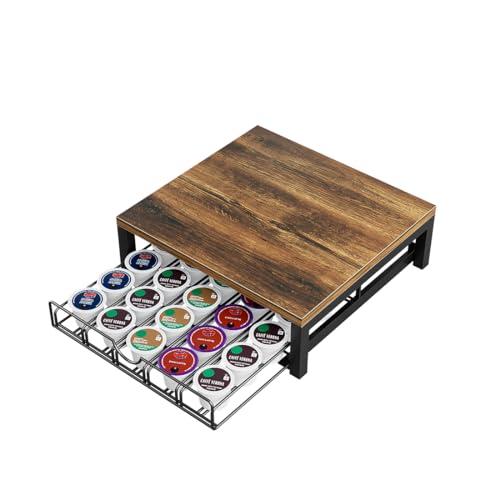 - مواد عالية الجودة: درج تخزين الكبسولات لأكواب كيه مصنوع من المعدن والخشب، قوي ومتين. تحافظ السلة الشبكية المعدنية على جفاف التهوية.