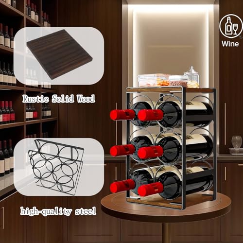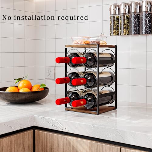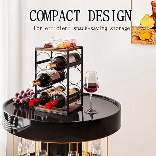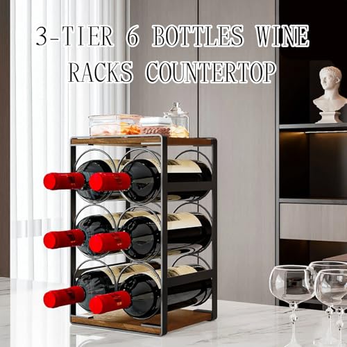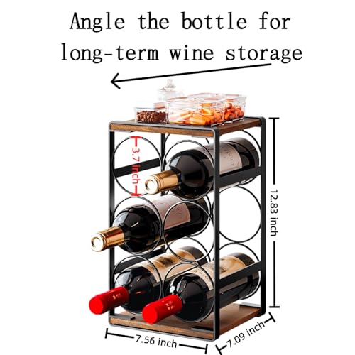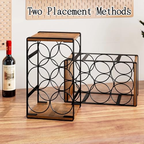 Dazioter - رف نبيذ خشبي لسطح الطاولة من دازيوتر، لا يحتاج إلى تجميع، 6 زجاجات، اسود + بني ريفي