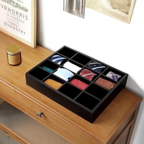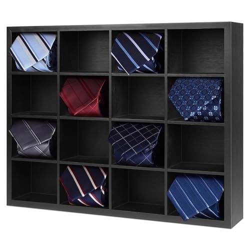 DBREAKS - منظم ربطات العنق للرجال، حامل يحوي 16 مساحة تخزين لتنظيم ربطات العنق والساعات والشرابات من دي بريكس (أسود)