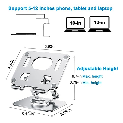 DCHAV - حامل لاب توب قابل للطي والتعديل من دي سي ايه في، كمبيوتر مكتبي دوار 360 درجة، تابلت ايباد مريح، طاولة مرتفعة الالومنيوم لشاشة الهاتف المحمول 5-12 انش، رمادي سبيس، من دي سي إتش إيه في