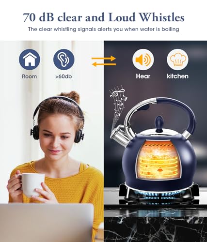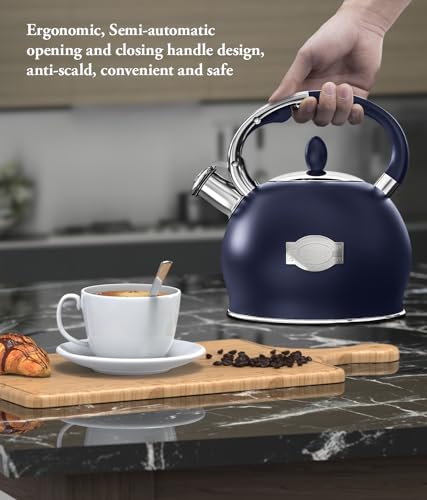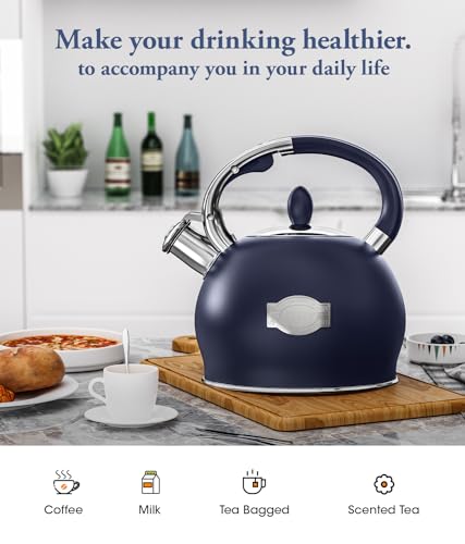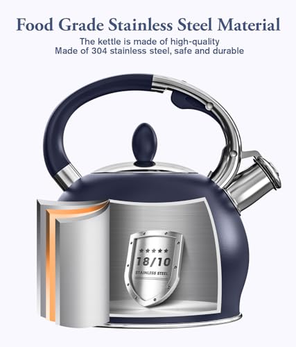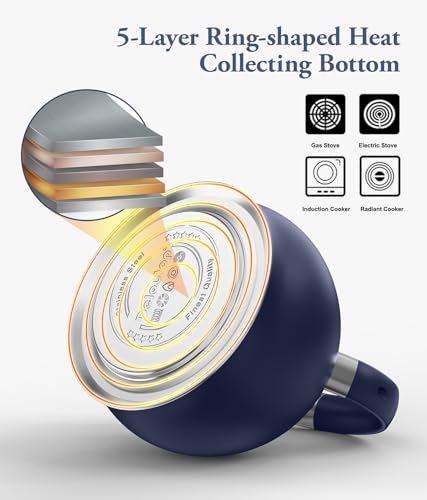 DclobTop - إبريق شاي بصفارة علوية من ديكلوب - غلاية شاي سعة 2.5 لتر، إبريق شاي عتيق، براد شاي بقاعدة ثلاثية الطبقات من الفولاذ المقاوم للصدأ لسطح الموقد الغاز والحث والحثي والهالوجين والإشعاعي